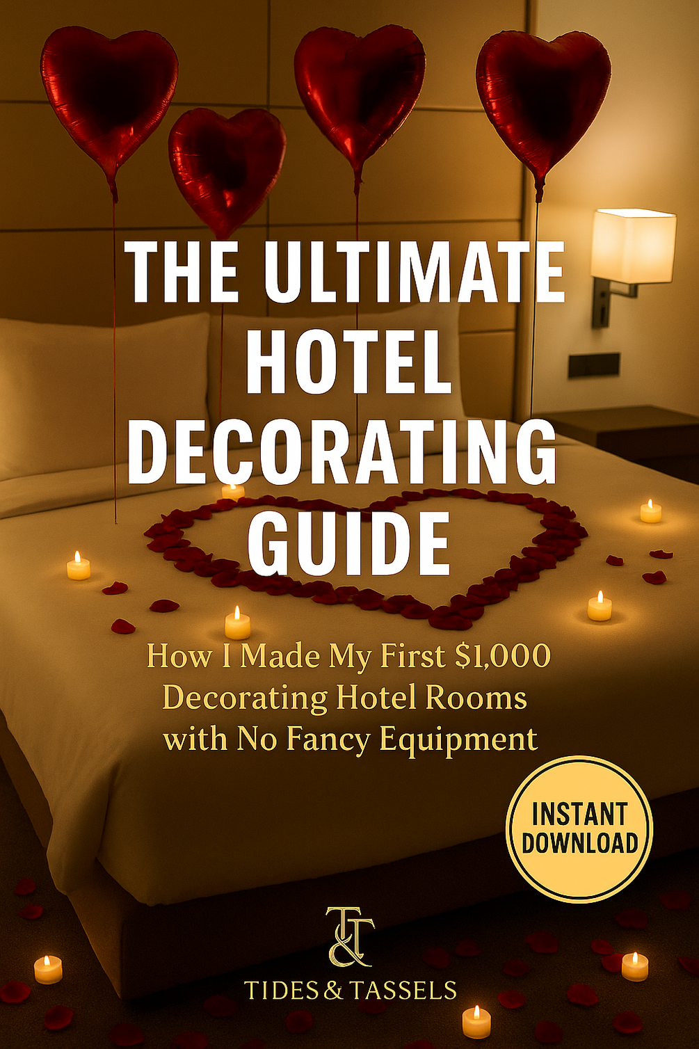 The Hotel Decorator Guide is not just a cute little ebook—it’s a money-making playbook for creative women who are ready to turn dollar-store balloons into $300 setups and financial freedom.
